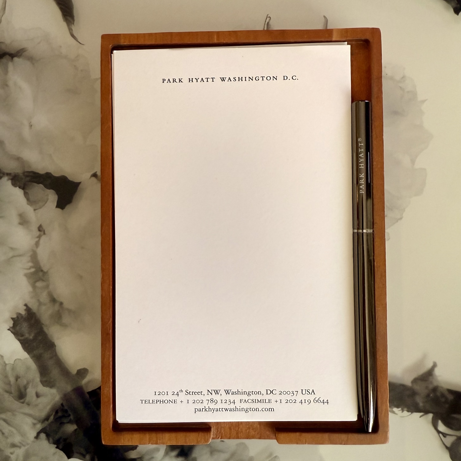 Park Hyatt Washington DC doesn’t make a grand entrance. In fact, unless you’re actively seeking it, you might stroll right past what appears to be just another sleek corporate building. There’s no sweeping driveway, no uniformed doorman, and no fleet of hotel bicycles parked outside in curated disorder. Aside from a tasteful floral display along the main street, the curb appeal is almost non-existent. There’s little signage, no red carpet—just a discreet door into what feels more Fortune 500 than five-star. I let myself in.