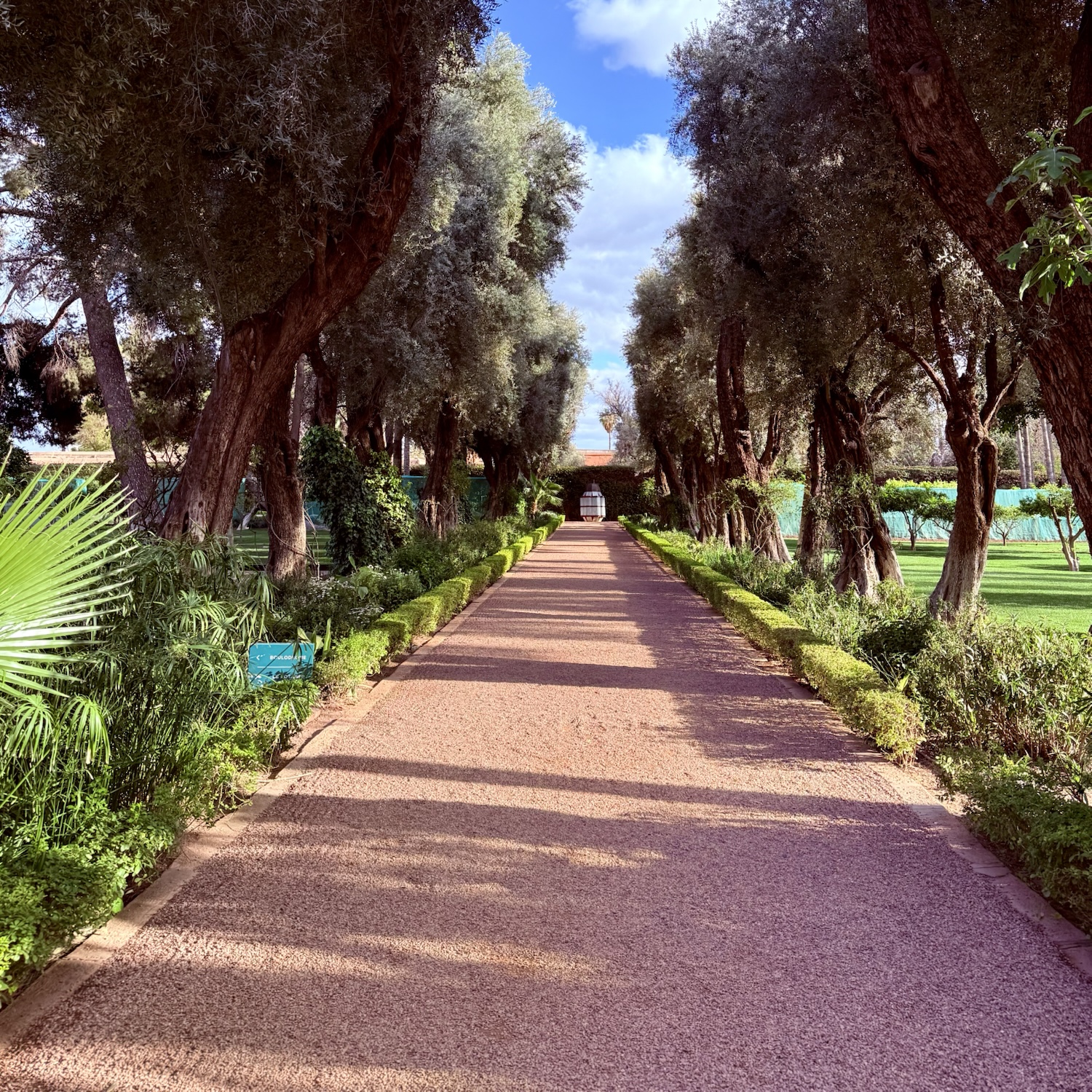 Step into the gardens and you’re met with twenty acres of serene, meticulously maintained greenery. A team of seventy tend to the estate’s olive trees, towering palms, orange blossoms, and fountains with near ceremonial care. Though the Medina is just a short stroll away, within these walls, it all feels reassuringly distant.