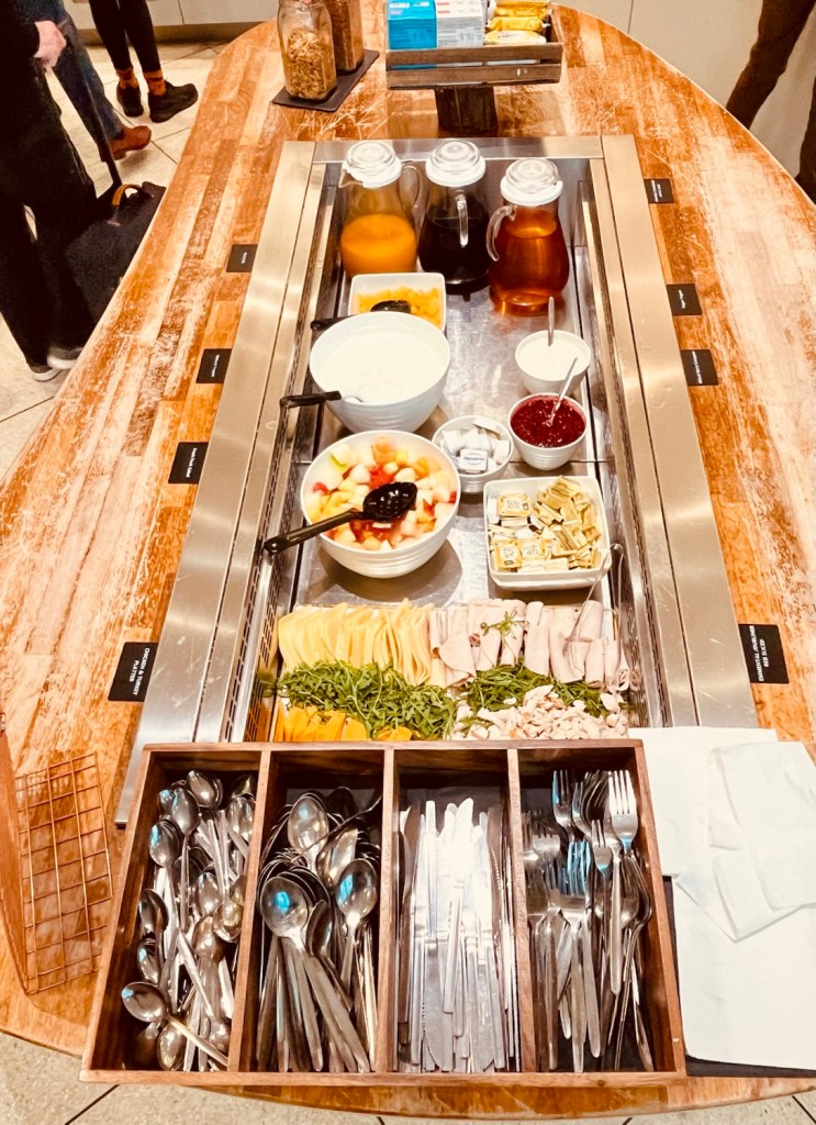 The 51st & Green Lounge is a very basic space with a stark, cold design and a limited, poor quality buffet. Not many Business Class lounges enforce a two-drink limit, a policy that alone makes you question the offering. The only redeeming quality is the peace of mind that comes with being done with all the formalities and ready to board. In the end, it is little more than somewhere to sit with some limited refreshments.
