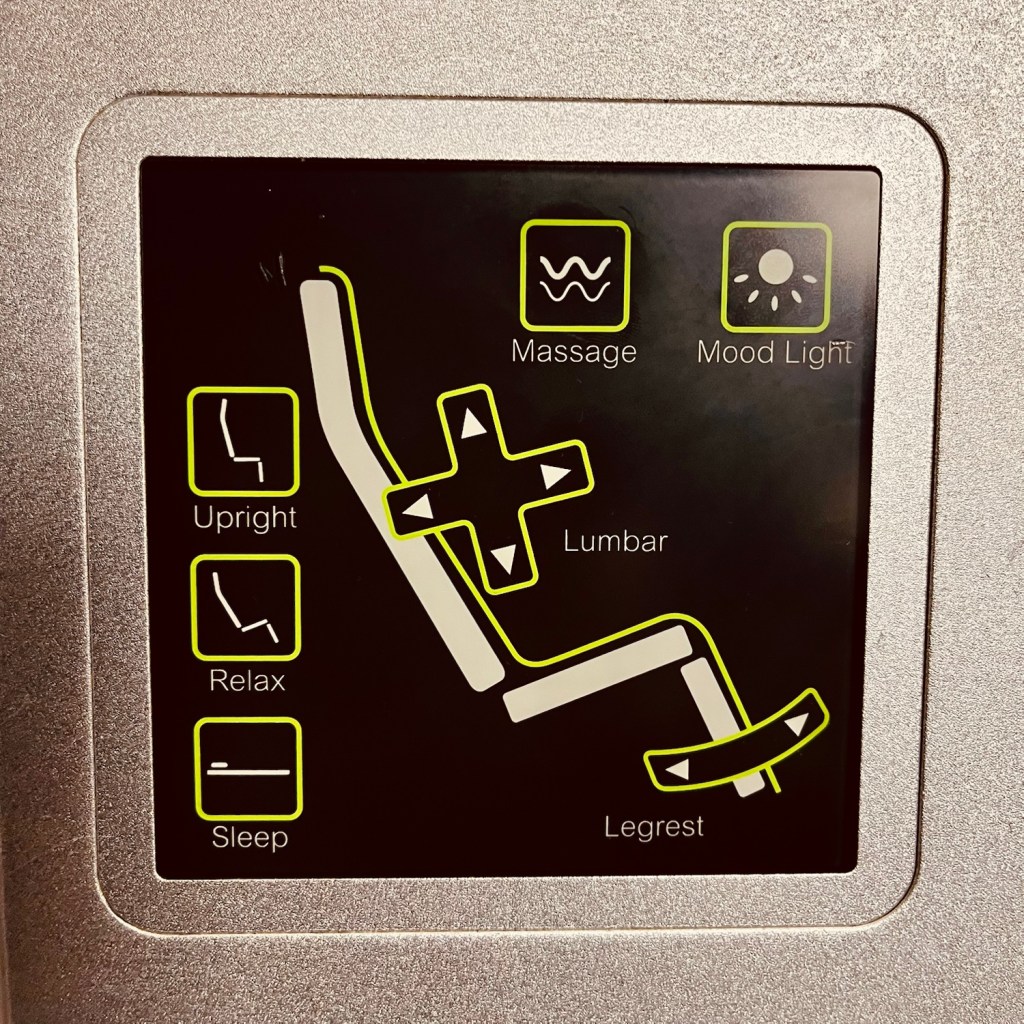 As for the seat itself, it is an older model—you won’t find sliding doors or cinematic screens here—but for these shorter transatlantic flights, it certainly gets the job done. It goes fully flat, as it should, and even includes a massage feature that, frankly, doesn’t really do much beyond providing a bit of amusement. You’ll also find power outlets conveniently close at hand. All in all, it’s a perfectly decent seat; not the best we’ve ever seen, but certainly far from the worst.