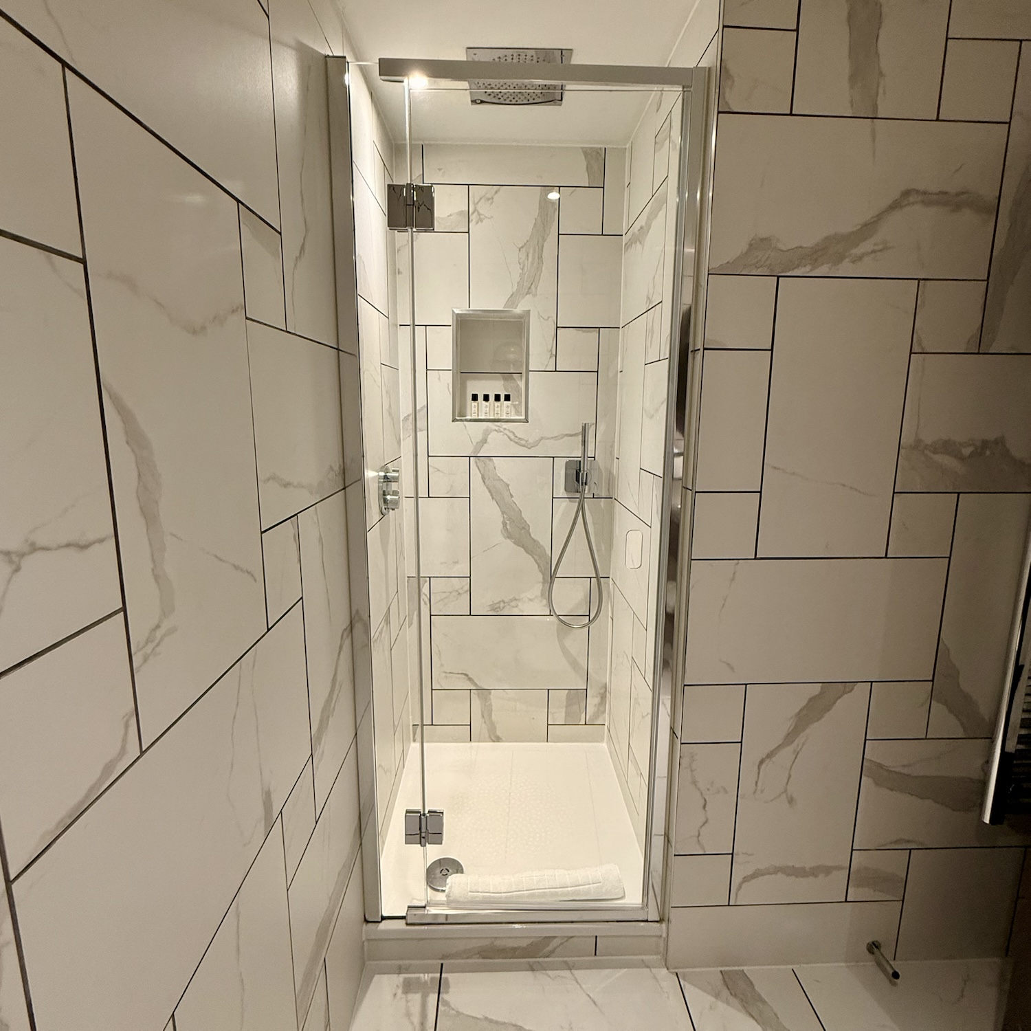 Stepping into the room, it is clear where the money went. Everything is solid and genuinely high-end, from the clearly expensive furnishings to the linens. Luxury that is felt and not just seen. However, the dedication to luxury ends abruptly in the bathroom. The finishing details were missed: the shower felt surprisingly small, and the tiles were noticeable for what they were not. For a room furnished at this level, the absence of real marble meant the space finished just shy of its potential.