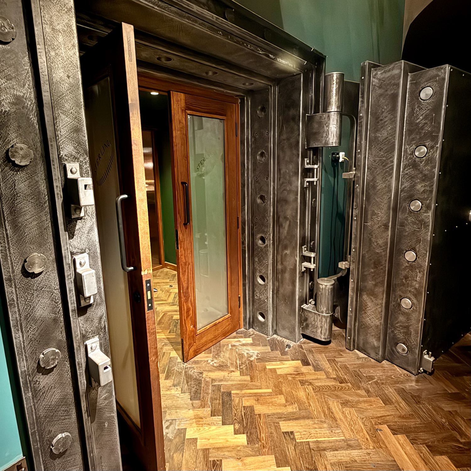 Downstairs, the evening starts in the former basement vault and now Sterling Bar. You enter through the huge, original vault door, immediately stepping into a space featuring a mini grand piano that wouldn’t feel out of place in a high-end Manhattan cocktail lounge. The bar area has a fantastic setting and atmosphere, making it a required stop.